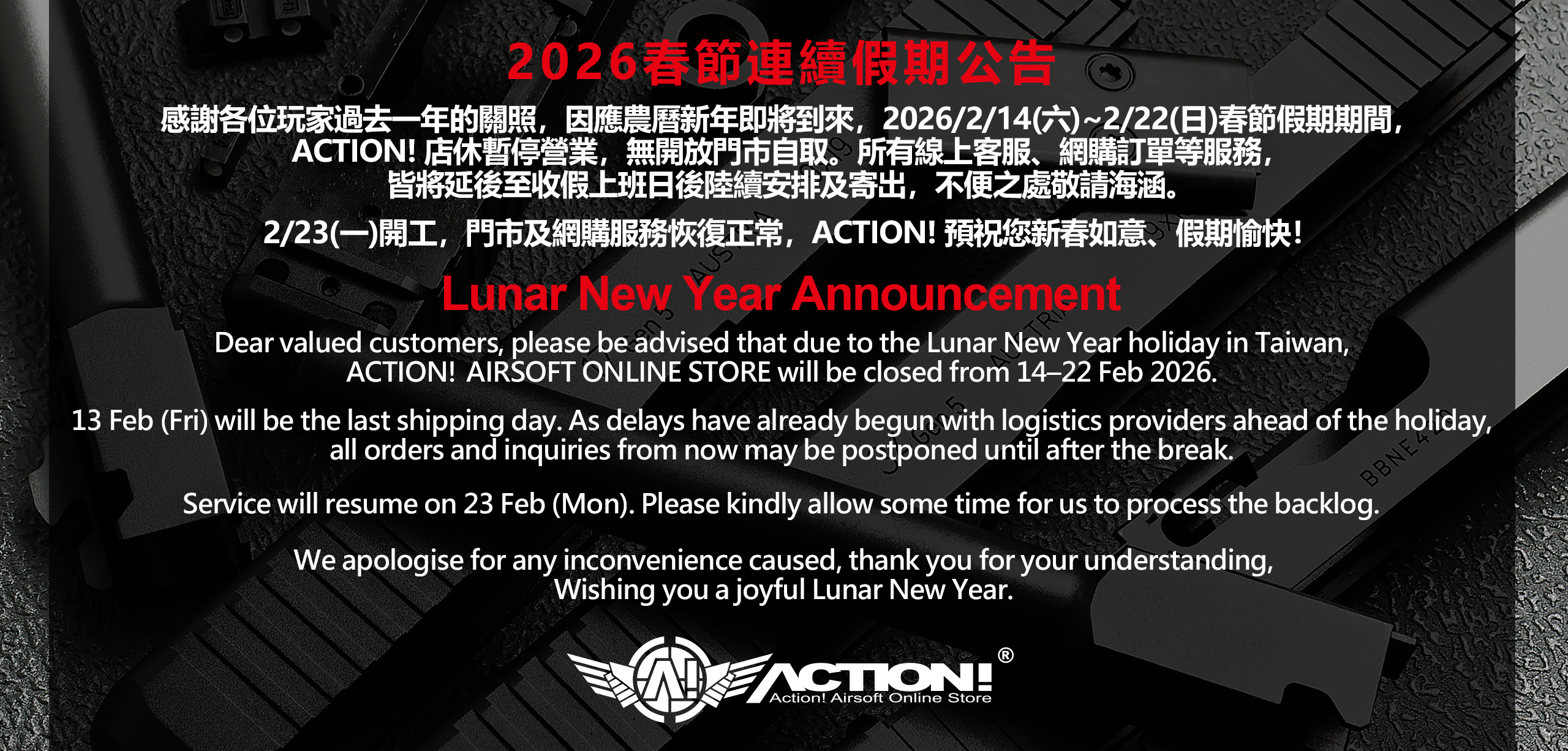 *由於春節假期將近,國內各地宅配服務陸續出現貨運擁擠的延遲情況,為避免您的訂單包裹於連假期間逾期停留於運輸站點的風險,我們的宅配服務最後出貨日為 2/11(週三)。